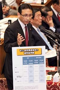 甘利明経済財政担当相は「(TPPは)日本からビジネスチャンス(商機)をつくっていくもの」と述べるだけ。安倍晋三首相は「(中小企業へ)影響を及ぼすことは想定していない」と答えるにとどまった。
