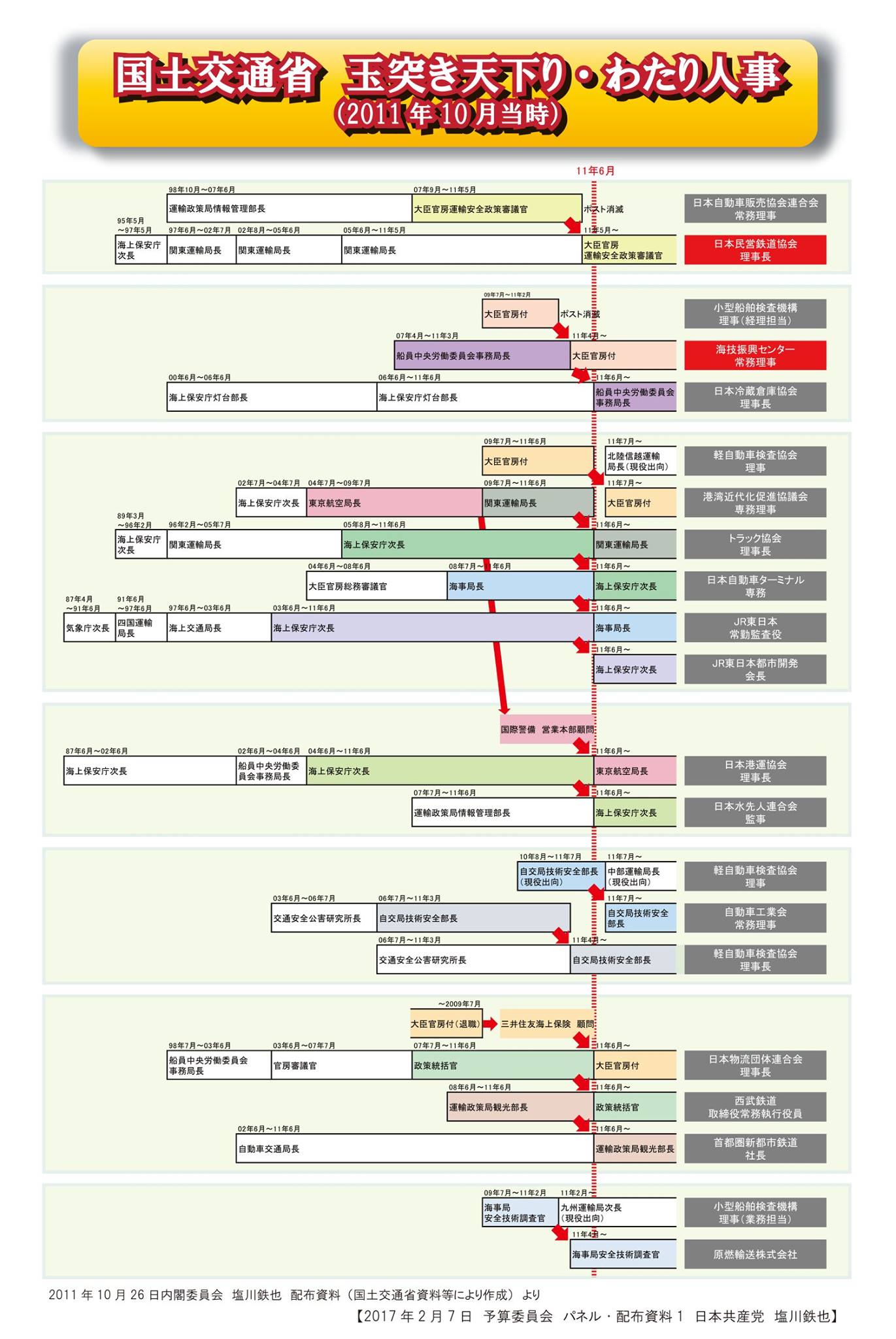 再就職等監視委員会は、第1次安倍政権が天下りを自由化した際につくった仕組みです。安倍首相が、監視委が機能した例として挙げる国交省の組織ぐるみの天下りあっせん問題(2011年)は、わたしが当時国会で取り上げたもの。