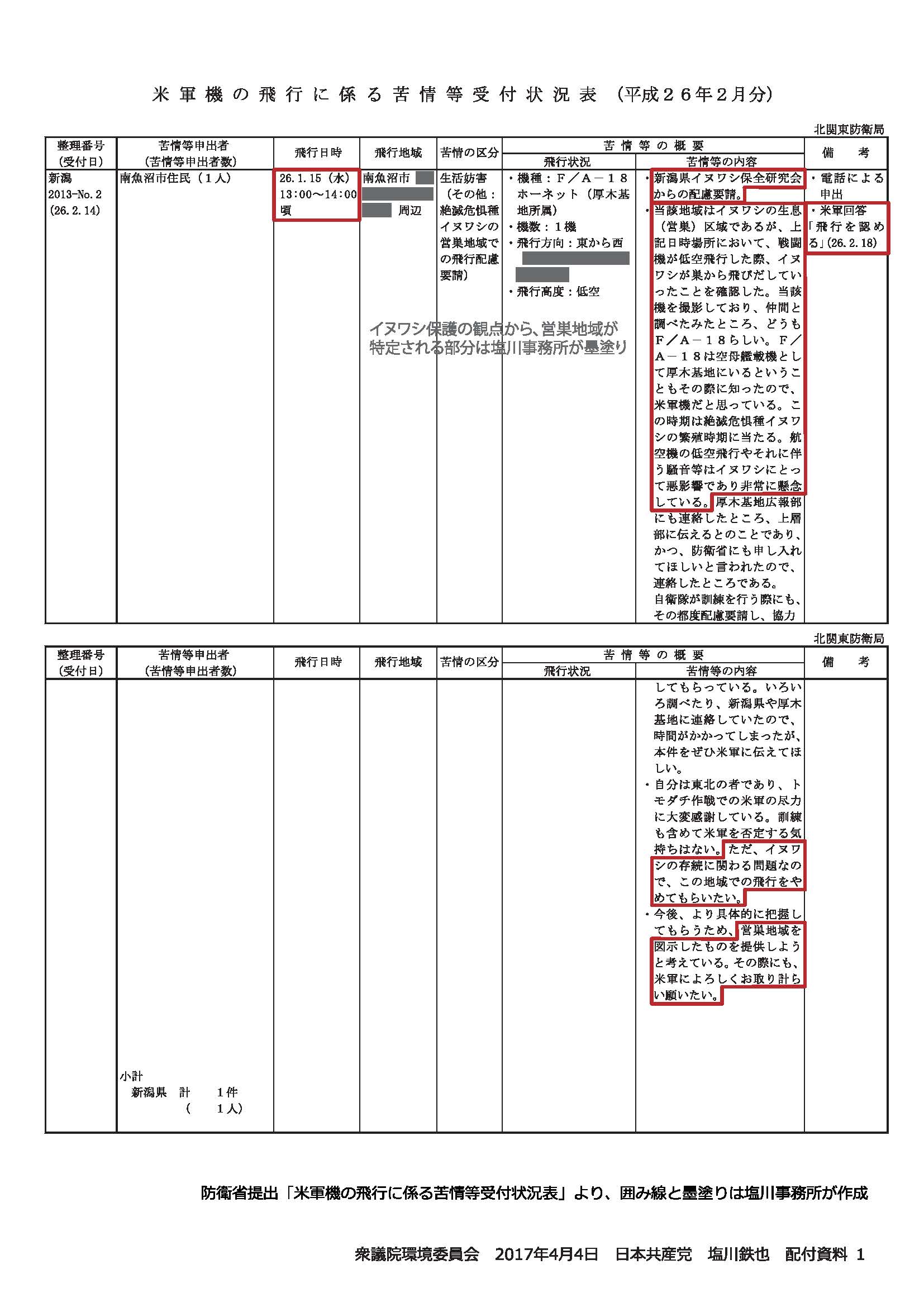 米国内では具体的に米軍機の飛行ルートを明らかにする必要があり、野生生物の影響に至るまで環境評価を行っている。日本国内での米軍機の訓練は規制のない身勝手なものだ。国内のルールに従って環境影響評価を行うなど、規制措置を設けるべきだ。