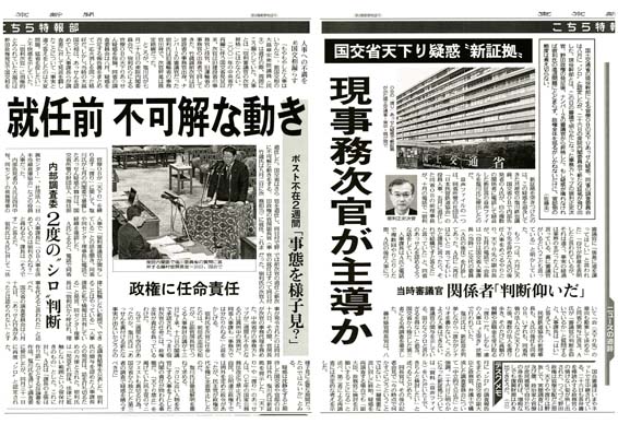 なお、『東京新聞』10月27日付に「国交省天下り疑惑“新証拠”」というタイトルで、「新証拠を突きつけたのは、この疑惑を追及してきた共産党の塩川鉄也議員。‥‥‥」と紹介された。