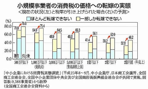 政府も全国商工会連合会が主張するとおり転嫁できない分を自ら利益を削って納税することになることを認めざるをえなかった。