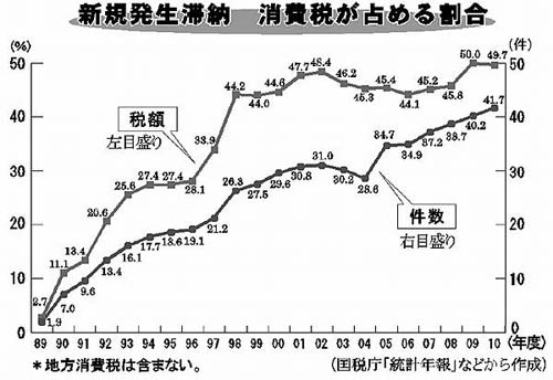 民主党の聞き取り調査で全国建設労働組合総連合が「事業者自身の負担で納税せざるをえない」ことは「消費税制度が抱える根本的な問題」と述べている。