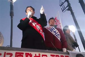 足利市内のスーパー前で、栃木5区の川上ひとし候補と街頭演説。