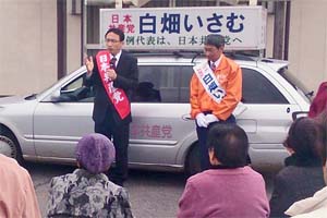 茨城県常総市で、白畑いさむ7区候補と訴えました。