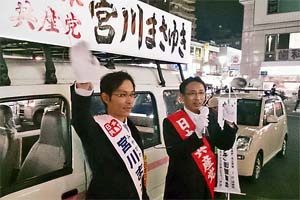 埼玉3区の宮川まさゆき候補と一緒です。当初予定した草加駅前の街頭演説は、渋滞で間に合わず残念!松原団地駅前の宣伝に駆けつけました。