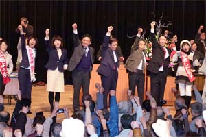 埼玉の党と後援会の全県決起集会。市田副委員長が講演、いっせい地方選挙の予定候補が決意表明、私と梅村議員もあいさつしました。