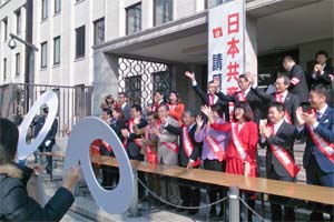 たくさんの議員の出迎えに、参加者の皆さんもうれしそう。一緒に頑張りましょう!