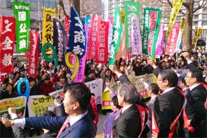 「安倍内閣の暴走を許すな!国民要求の実現を求める請願デモ」の激励に駆けつけた衆議院議員団。