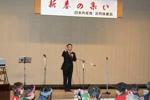 栃木5区の候補者として奮闘した川上ひとしさんもあいさつ。茂木元経産大臣を相手に、得票率26%は過去最高であり、10%を超えたのも初めて。供託金が戻ってきました。足利市の党の得票率も10%を超えて、県内市ではトップでした。