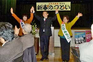 熊谷市の党と後援会主催の新春のつどいに出席。大山みちこ・桜井くるみ市議と一緒に訴えました。
