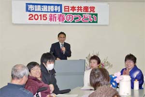 鴻巣市で新春のつどい。4年前の市議選では、議席が空白となり、くやしい思いをしました。今回は竹田えつ子さん、すわみつえさんの押し上げ実現をめざし奮闘中です。