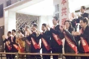 「出版、報道、表現の自由を守れ!」と、声を合わせてシュプレヒコール!