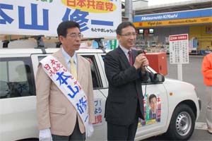 川越市議20年の本山修一候補は、この間の生活相談は7千件にのぼります。その一つひとつが、市民の暮らし第一という本山さんの政治姿勢を示すものです。市議会では、中学卒業までの医療費無料化や住宅リフォーム助成制度拡充の先頭にたってきました。その力を県政で発揮してほしい。
