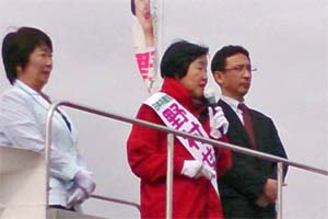 栃木県議選の応援に。野村せつ子候補(宇都宮市・上三川町 定数13)必勝を訴えました。