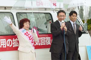 富士見市役所前。埼玉県議選で、せとぐち幸子候補(富士見市区)の応援に駆けつけました!
