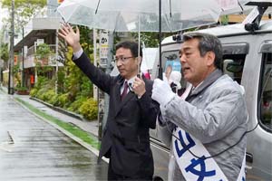 オール与党の議員ばかりでは、県政は変わりません。春日部市議8期31年の経験を生かし、議席獲得に全力を挙げる秋山候補です。