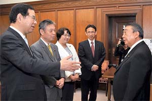 衆議院の大島理森新議長が、就任のあいさつに日本共産党国会議員団を訪れ、懇談。