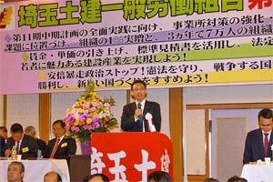 日光市鬼怒川で行われた埼玉土建第45回定期大会であいさつ。