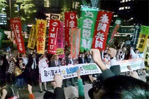 労働者派遣法と労働時間法制の改悪に反対する国会請願デモを激