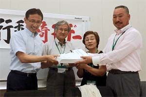 国会行動埼玉デー。戦争法案の廃案を求める要請や署名を受けとりました。