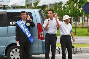 間近に迫った狭山市長選。「変えよう狭山・みんなの会」のかとう武美さんと街頭演説。