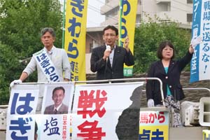 ハコモノ県政から暮らし応援の県政への転換を。戦争法案廃案の一票をはぎわら貞夫候補へ!