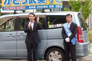狭山市長選挙告示日。かとう武美候補の応援に駆けつけました。