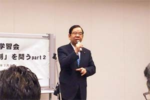 柿沢維新幹事長も駆けつけ、法案の違憲性について語りました。
