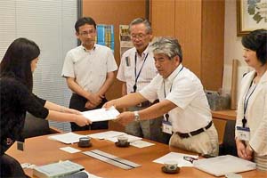 会のみなさんは、旧馬頭町における産廃不法投棄の処理を口実として、県が最終処分場を建設するやり方がおかしいと、計画の撤回を求めています。
