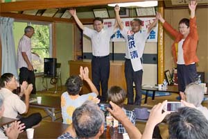 8月18日告示、23日投票の茨城県美浦村議選挙。演説会に駆けつけました。山中たい子県議も訴え。