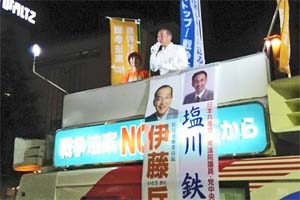 明後日が投票日の埼玉県知事選。演説開始時間に遅れましたが、所沢駅西口で伊藤岳さん、柳下県議と一緒に、柴田やすひこ候補の支援をお願いしました。