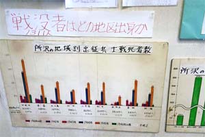 所沢市内の戦死者は1311人。そのほとんどが終戦の1年前でした。空襲で20人の方が亡くなっています。
