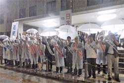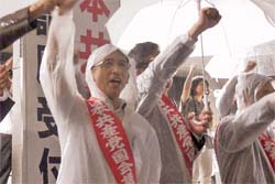 台風の豪雨の中、たくさんの方が駆けつけています。民主党、社民党議員も一緒です。