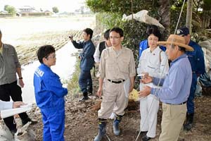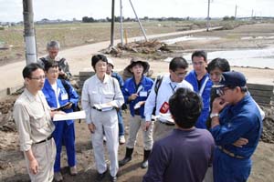 堀越・石川常総市議の案内で、紙参院議員、山中・江尻・上野茨城県議らとともに、常総市の水害調査をおこないました。