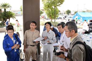 駐車場に臨時の診療室を開設。呼吸器系の症状や作業中のけが、下痢などのストレスが多いということです。