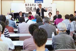 1時間以上にわたって、参加者からたくさんの質問、意見、要望をいただきました。 一つ一つが貴重な発言です。戦争法廃止、立憲主義守れという願いの強さを改めて実感しました。