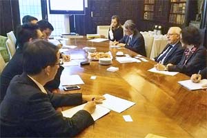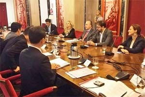 スペインのバルセロナ。カタルーニャ州の「全国企業振興協会」(写真)と駐カタルーニャ中央政府代表と懇談。