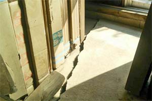 宅地の盛土に使用された鉄鋼スラグが膨張し、家屋などに傾きやひび割れをもたらしています。