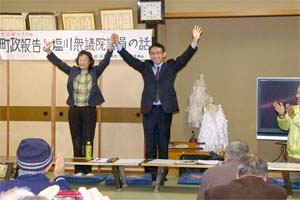 11月10日告示、15日投票で行われる茨城県八千代町議選挙。大久保ひろ子町議が町政報告、私は国政報告。堀越道男常総市議が水害対策について報告しました。