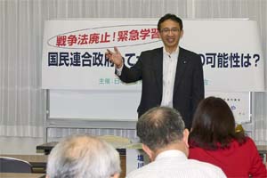 日本共産党埼玉法律事務所後援会主催の「戦争法廃止!緊急学習会」で講演。