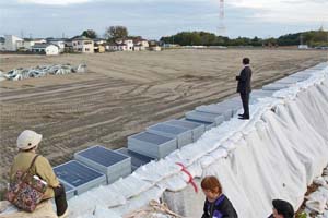 ここはより高い堤防を建設する場所だったにもかかわらず、ソーラーパネル設置工事によって、逆に自然堤防が削られてしまいました。近隣住民のみなさんが、その問題を指摘していたのに、まともに対応してこなかった国交省の責任は重大です。
