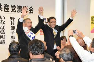 栃木県上三川町の演説会で講演。12月22日告示、27日投票の上三川町議選で8期目をめざす、いなば弘町議の必勝と参院選勝利を訴えました。野村節子県議も水害対策など県政報告。