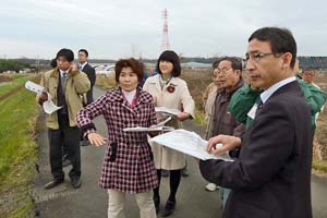 思川流域の浸水被害現場を視察。幼稚園や大学で被害状況の聞き取り。堤防整備の遅れや区画整理事業に関連して豊穂川の堤防を削った問題など、行政の対応について明らかにすべき問題があることがわかりました。