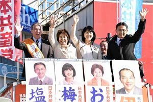 大宮駅東口で新年の街頭演説。伊藤岳参院埼玉選挙区予定候補、おくだ智子参院比例予定候補、梅村さえこ衆院議員とともに訴えました。司会は、神田義行さいたま市議です。