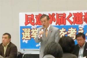 「民意が届く選挙制度の実現を!選挙制度を考える学習集会」に出席。穀田議員が衆院選挙制度答申を含む選挙制度に関する国会情勢を報告。定数削減に合理的根拠がないことを明らかにしました。
