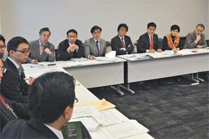 甘利明前経済再生相の口利き疑惑で、穀田恵二、笠井亮、本村伸子、斉藤和子各衆院議員と井上哲士、仁比聡平、辰巳孝太郎各参院議員とともに国土交通省と都市再生機構(UR)から聞き取り。