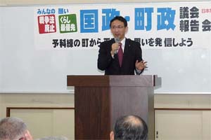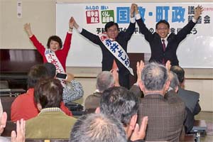 4年前の選挙で、永井さんは中学卒業までの医療費無料化制度の実現を公約として訴えました。その1年後に実現。町民の要求運動とともに頑張ってきた結果です。