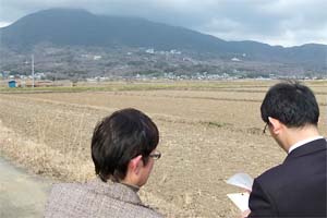 山中県議、党市議団の案内で現地を視察、住民の方から要望をお聞きしました。