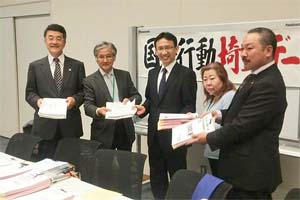戦争する国づくりストップ!に取り組むオール埼玉総行動実行委員会の小出弁護士も参加。皆さんから、戦争法廃止署名、消費税増税中止署名など受け取りました。