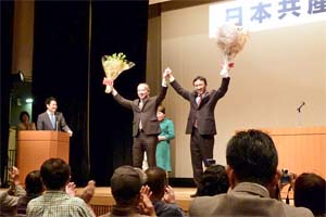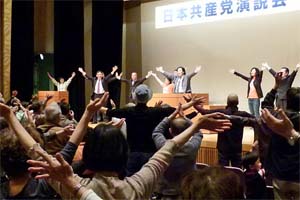 草加市の日本共産党演説会。伊藤岳参院埼玉選挙区予定候補とともに訴えました。